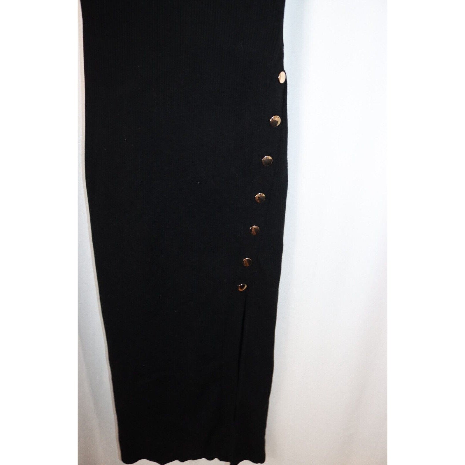 This is a black ribbed bodycon dress by Windsor in size Large. It is sleeveless, and made of nylon and rayon. Suitable for various occasions such as weddings, parties, casual, and formal events. The dress is designed for juniors/teens to wear in summer, fall, and spring.